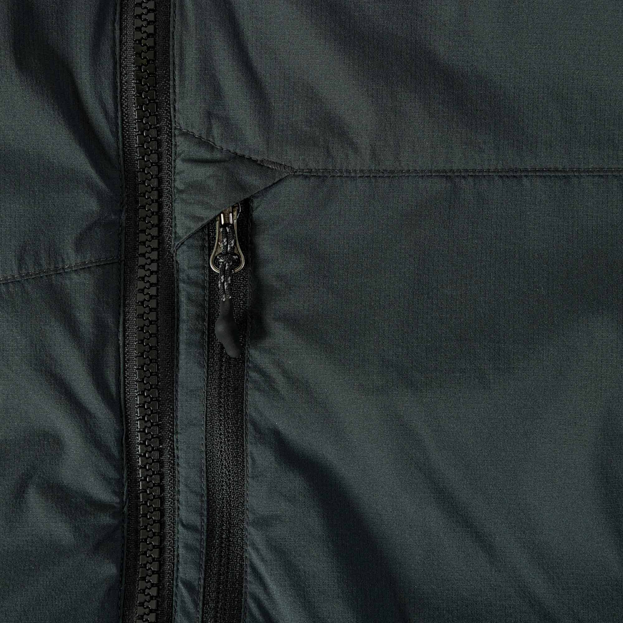 The outer fabric is a made in Japan, 15d stretch nylon with a 46gsm mini-ripstop construction. The insulation is paneled with recycled Vivo Extreme (40g & 60g) and Vivo Ocean (25g).